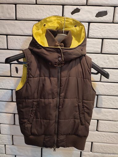 Жилетка с капюшоном на молнии,состояние хорошее, размер 42-44,б.у.мало, дефектов нет.длина изделия 53 см,ПОГ 46см, спинка 36 см, разгружаю гардероб...