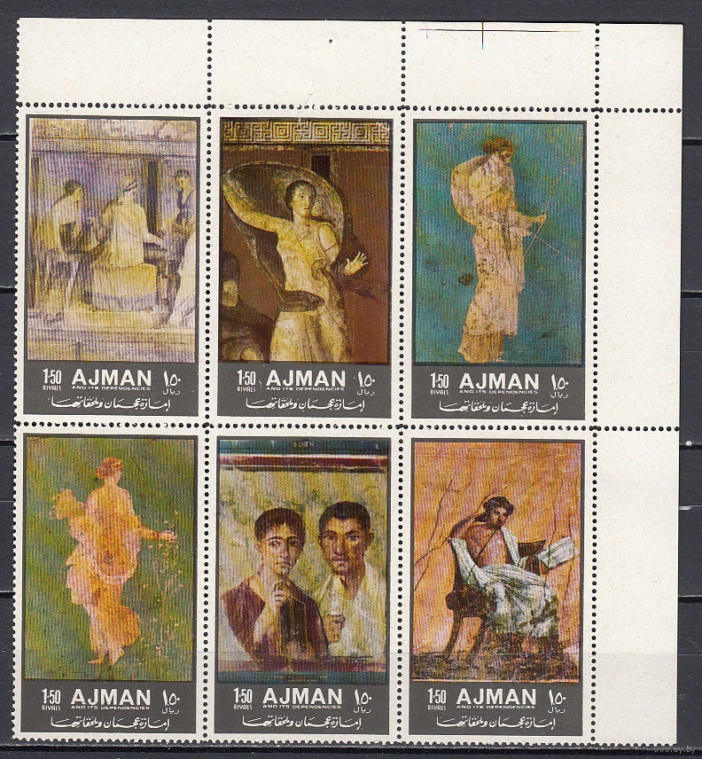 Живопись. Аджман. 1972. Сцепка из 6-ти марок. Michel N 2047-2052 (8,0 е).