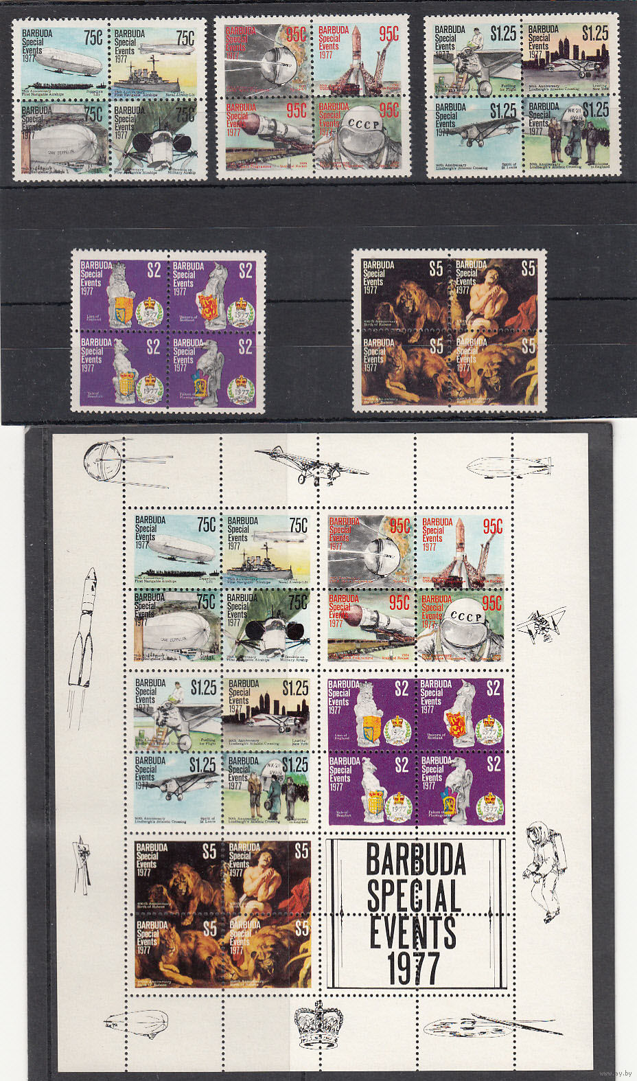 Живопись. Авиация. Космос. Барбуда. 1977. 10 марок в квартблоках и 1 блок. Michel N 352-371, бл29 (49,0 е).