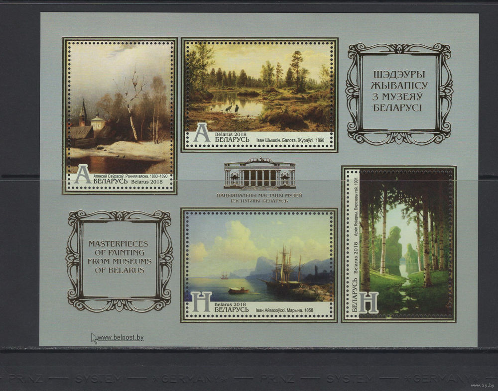Живопись Беларусь 2018 Малый лист "Шедевры живописи из музеев Беларуси" золото