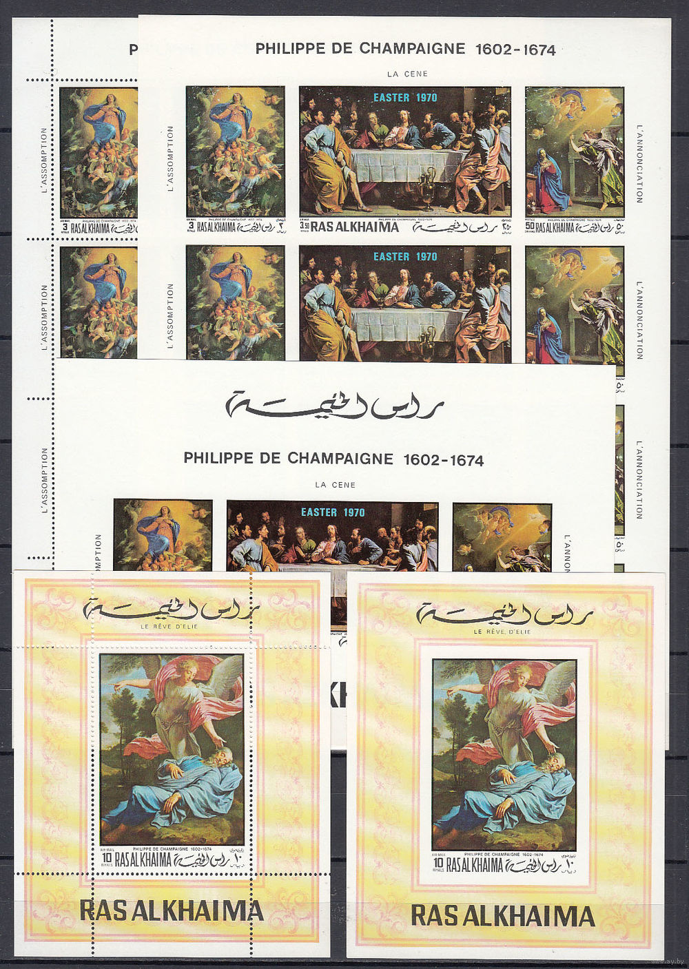 Живопись. Филипп де Шампань. Рас Эль Хаима (ОАЭ). 1970. 2 малых листа и 3 блока. Michel N 392-394, бл88 (128,5 е)