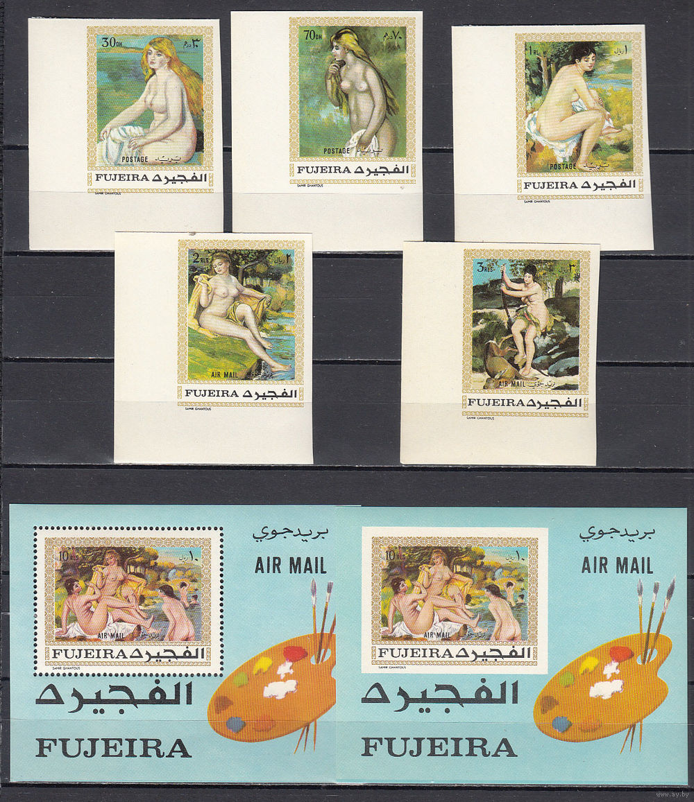 Живопись. Фуджейра. 1971. 5 марок б/з и 2 блока (с/з и б/з). Michel N 648-652, бл49 (24,5 е)