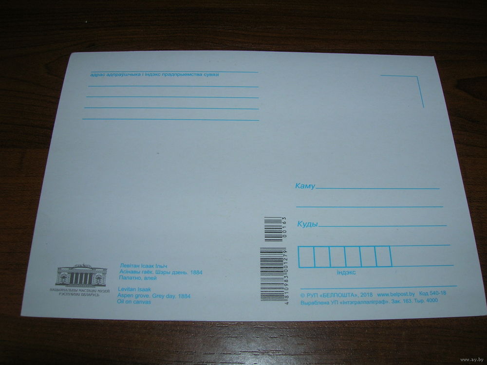 Живопись Левитан Осиновый лесок 2018 год Беларусь Белпочта Чистая
