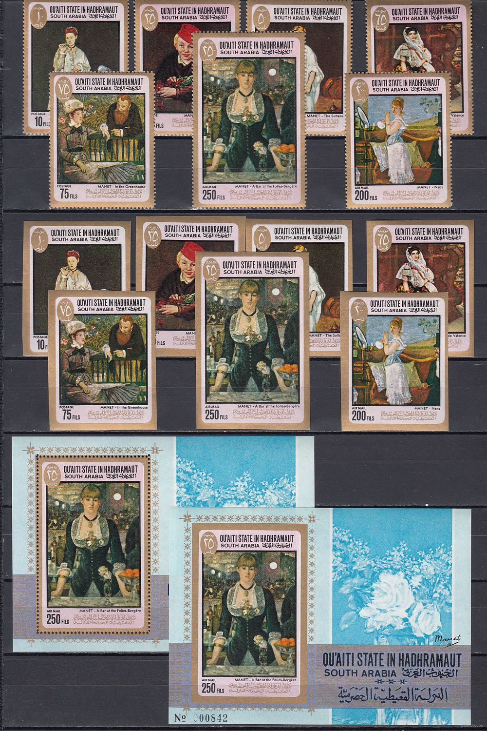Живопись. Мане. Аден. 1967. 7 марок с/з, 7 марок б/з и 2 блока (с/з и б/з). Michel N 131-137, бл12 (107,5 е)