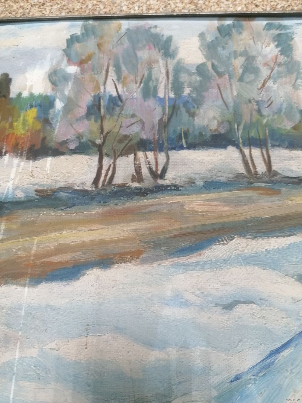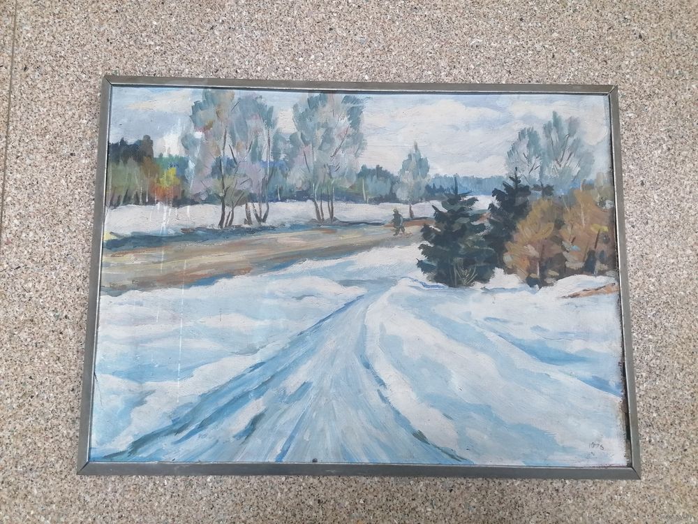 Состояние на фото. Холст оформлен в металлическую раму и подрамник из дсп. На фото отразил. При желании можно офоормить по другому.