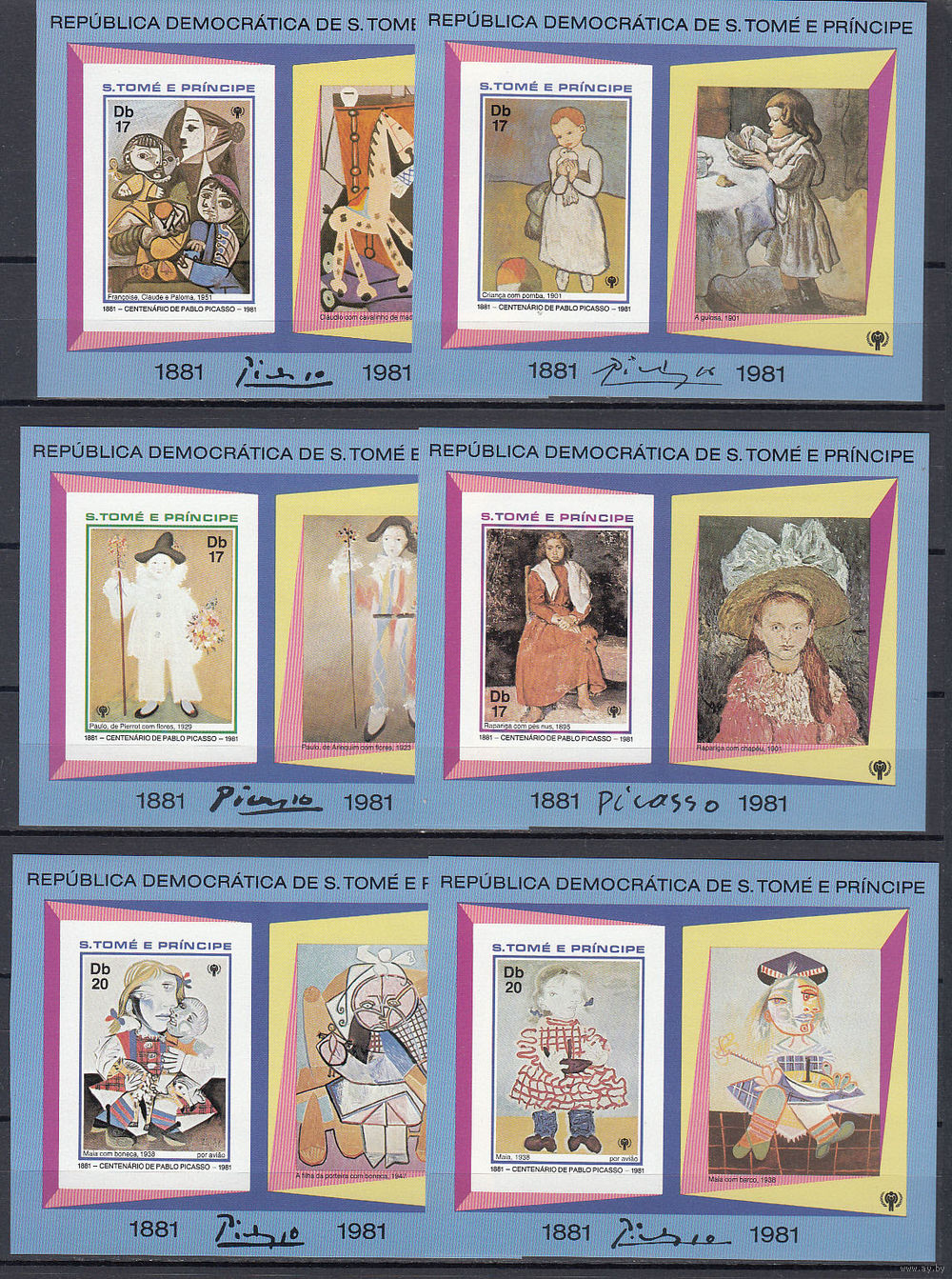 Живопись. Пикассо. Сан-Томе и Принсипе. 1981. 6 блоков б/з. Michel N бл70-75 (80,0 е)