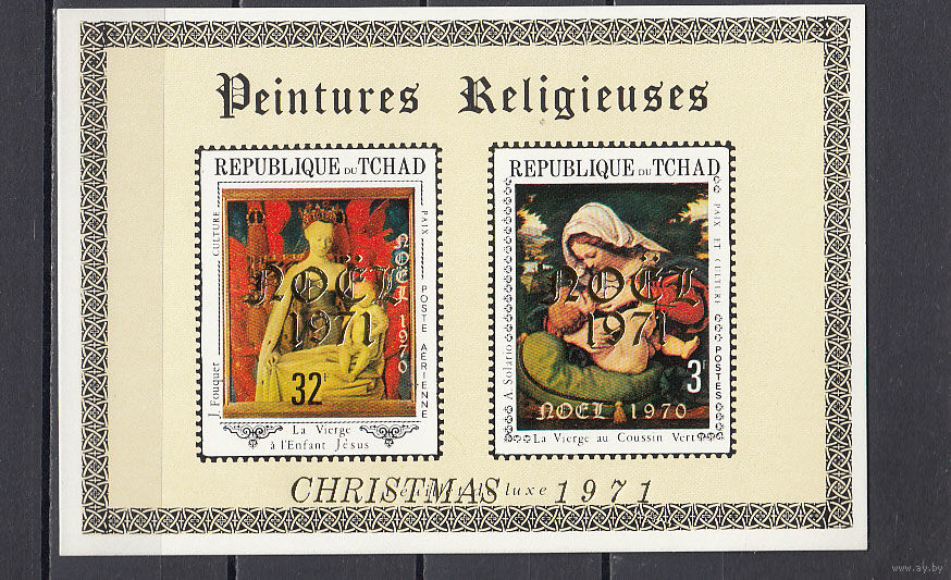 Живопись. Рождество. Чад. 1972. 1 блок б/з с надпечаткой. Michel N (- е).