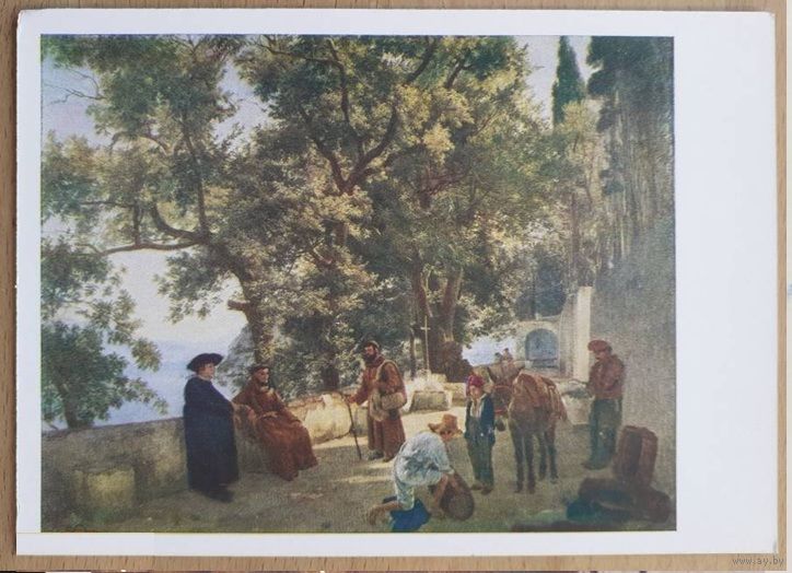 Живопись СССР С. Щедрин "Терраса на берегу озера" открытка 1961, тираж 25 тыс