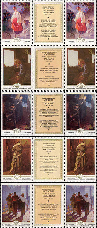 Живопись Украины СССР 1979 год (5011-5015) серия из 5 марок с купоном
