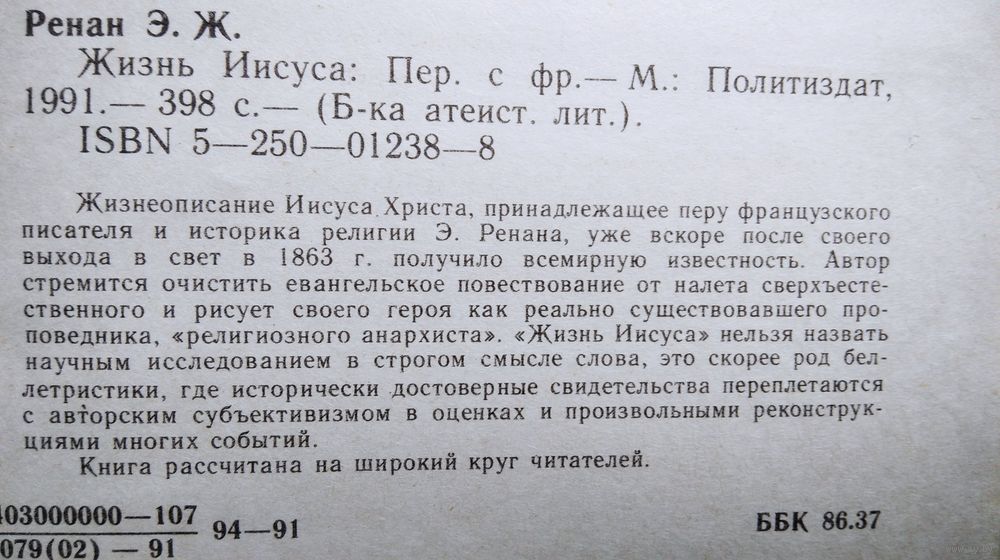 Жизнь Иисуса // Серия: Библиотека атеистической литературы