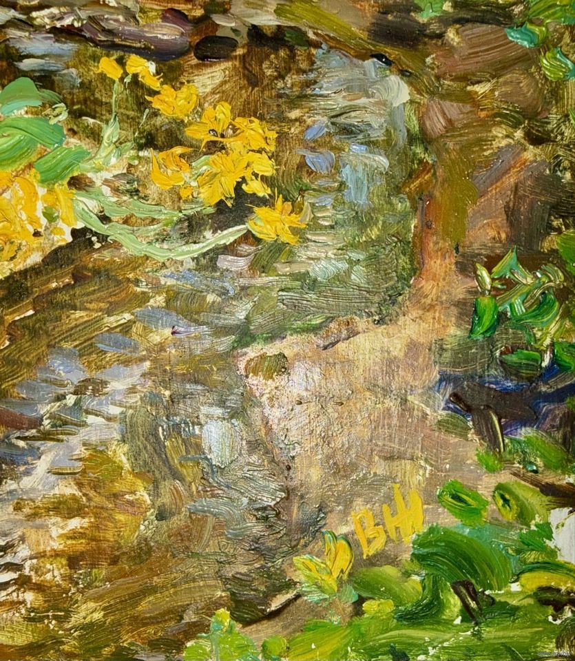 Жолток В.К "Ручеёк", этюд. Картон, масло. Размер с рамой 36,5х53 см.