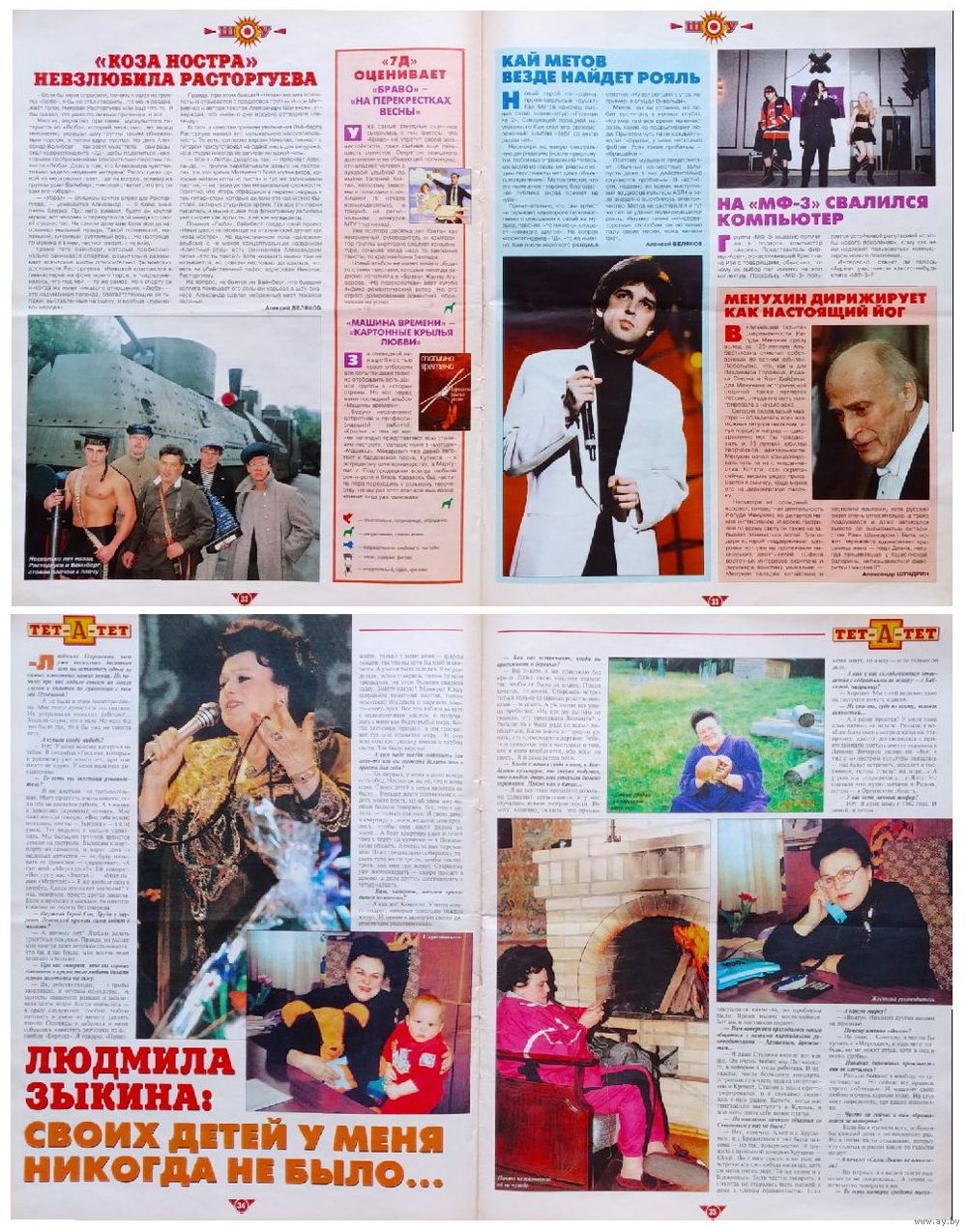 а также: Кай Метов, Любэ, Кристина Орбакайте, Борис Хмельницкий, Игорь Воеводин, Олег Марусев, Кэтрин Оксенберг, Лори Сингер, Альфред Хичкок, Демис Руссос, Кевин Костнер, Брижит Бардо, Жан Клод Ван Дамм и другие.
