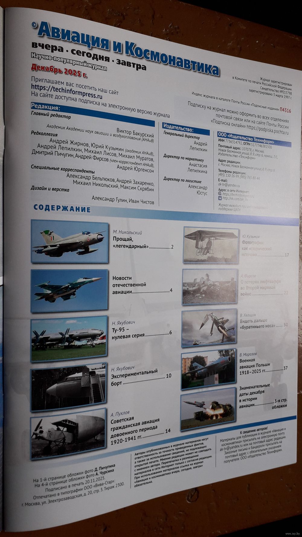 | Научно-популярный, технический журнал ВВС "Авиация и космонавтика", № 12, за 2025 год, стр. 50. | |