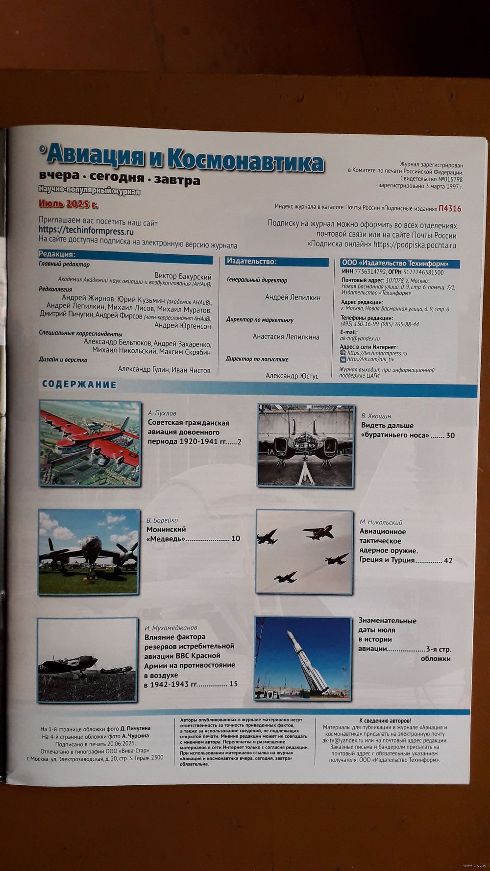 | Научно-популярный, технический журнал ВВС "Авиация и космонавтика", № 7, за 2025 год, стр. 50. | |