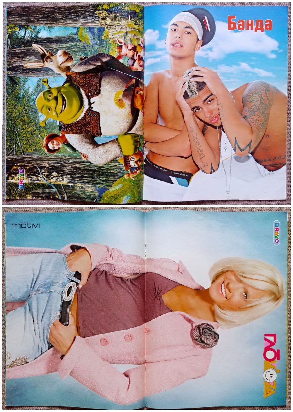 постеры: Шрек, Банда / Глюкоза (на скрепках, никогда не вынимались и не использовались).