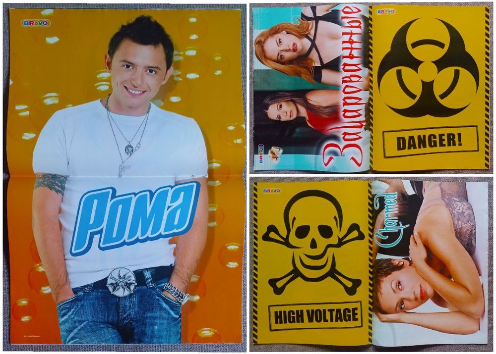 Постеры: Зачарованные, Danger / Рома Зверь / High Voltage (на скрепках, никогда не вынимались и не использовались).