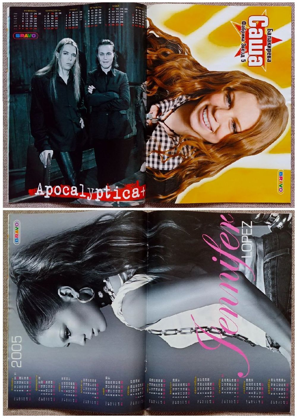 Постеры: Apocalyptica + HIM + Rasmus, Саша Балакирева / Дженнифер Лопес (на скрепках, никогда не вынимались и не использовались).