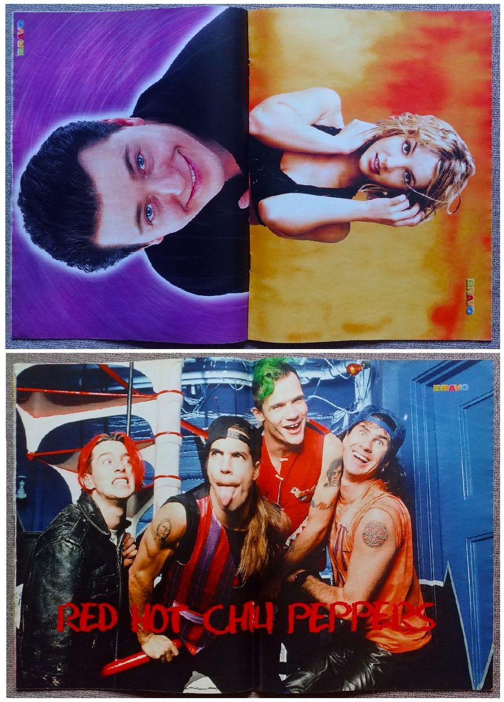 постеры: Сергей Безруков, Бритни Спирс / Red Hot Chili Peppers (на скрепках, никогда не вынимались и не использовались).