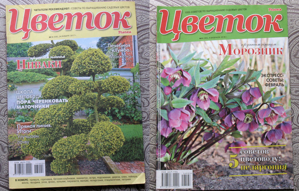 Журнал Цветок номера 3,4,8,10,11,13,15,17 2010, номер 2,16,24 2011, номер 22 2012, номера 3,4,17 2016, номера 2 2017