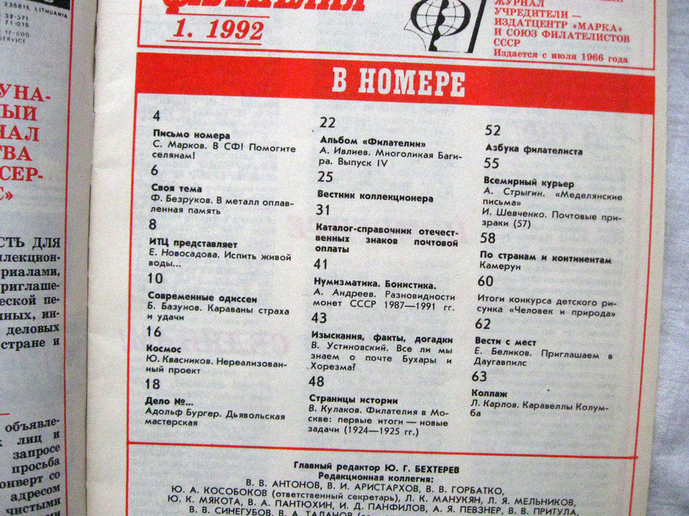 Журнал Филателия (бывший Филателия СССР) Номер 1-1992 Есть все номера за 1970-80-е годы и кое-что из 1960-х Следите за моими новыми лотами Отправка посылок размером 25*35*45 см за 6,50 через QR-box без ограничения веса
