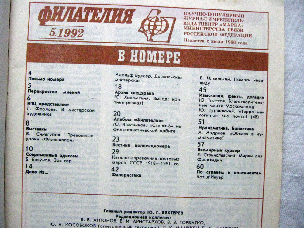 Журнал Филателия (бывший Филателия СССР) Номер 5-1992 Есть все номера за 1970-80-е годы и кое-что из 1960-х Следите за моими новыми лотами Отправка посылок размером 25*35*45 см за 6,50 через QR-box без ограничения веса