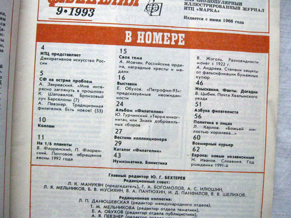 Журнал Филателия (бывший Филателия СССР) Номер 9-1993 Есть все номера за 1970-80-е годы и кое-что из 1960-х Следите за моими новыми лотами Отправка посылок размером 25*35*45 см за 6,50 через QR-box без ограничения веса