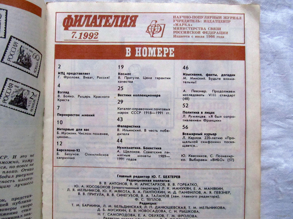 Журнал Филателия - бывший Филателия СССР Номер 7-1992 Есть все номера за 1970-80-е годы и кое-что из 1960-х Следите за лотами и резервируйте номера заранее Часть номеров уже в резерве Отправка посылок размером 25*35*45 см за 6,50 через QR-box
