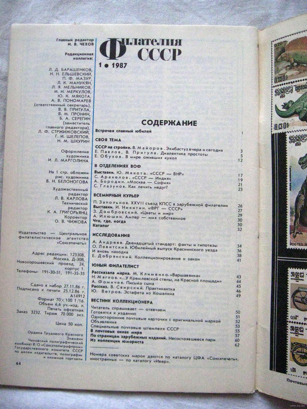 Журнал Филателия СССР Номер 1-1987 Есть все номера за 1970-80-е годы и кое-что из 1960-х Следите за моими новыми лотами Отправка посылок размером 25*35*45 см за 6,50 через QR-box без ограничения веса