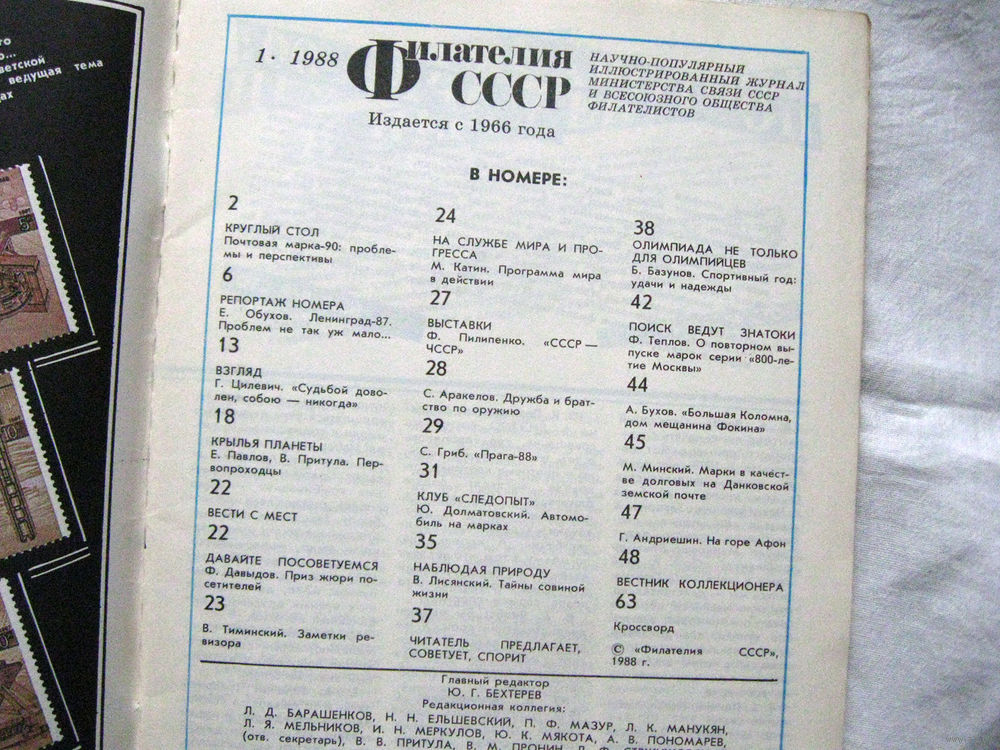 Журнал Филателия СССР Номер 1-1988 Есть все номера за 1970-80-е годы и кое-что из 1960-х Следите за моими новыми лотами Отправка посылок размером 25*35*45 см за 6,50 через QR-box без ограничения веса