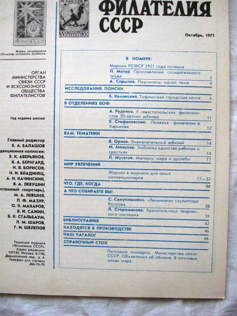 Журнал Филателия СССР Номер 10-1971 Есть все номера за 1970-80-е годы и кое-что из 1960-х Следите за моими новыми лотами Отправка посылок размером 25*35*45 см за 6,50 через QR-box без ограничения веса