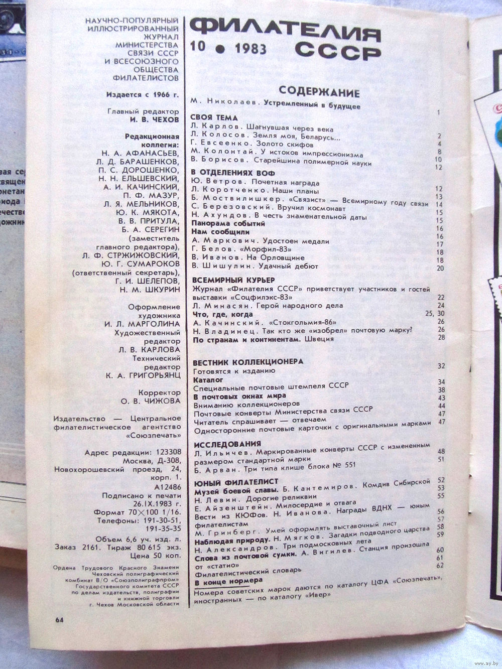 Журнал Филателия СССР Номер 10-1983 Есть все номера за 1970-80-е годы и кое-что из 1960-х Следите за лотами и резервируйте номера заранее Часть номеров уже в резерве Отправка посылок размером 25*35*45 см за 6,50 через QR-box