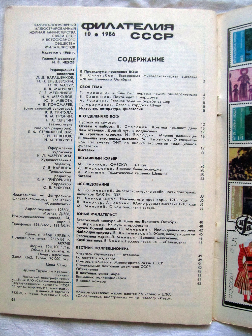 Журнал Филателия СССР Номер 10-1986 Есть все номера за 1970-80-е годы и кое-что из 1960-х Следите за лотами и резервируйте номера заранее Часть номеров уже в резерве Отправка посылок размером 25*35*45 см за 6,50 через QR-box
