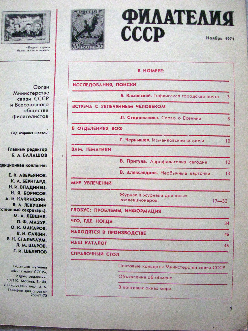 Журнал Филателия СССР Номер 11-1971 Есть все номера за 1970-80-е годы и кое-что из 1960-х Следите за моими новыми лотами Отправка посылок размером 25*35*45 см за 6,50 через QR-box без ограничения веса