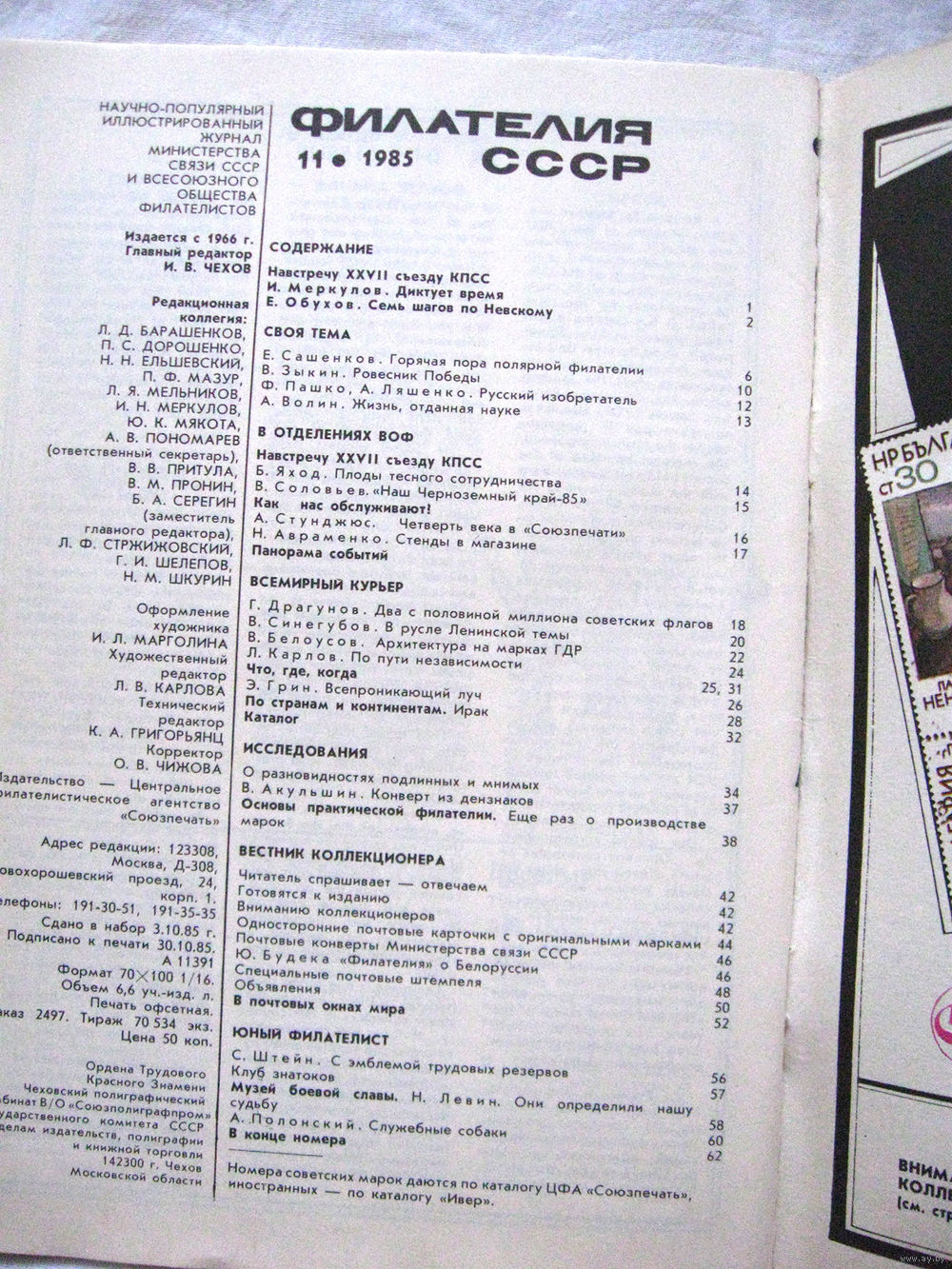 Журнал Филателия СССР Номер 11-1985 Есть все номера за 1970-80-е годы и кое-что из 1960-х Следите за моими новыми лотами Отправка посылок размером 25*35*45 см за 6,50 через QR-box без ограничения веса