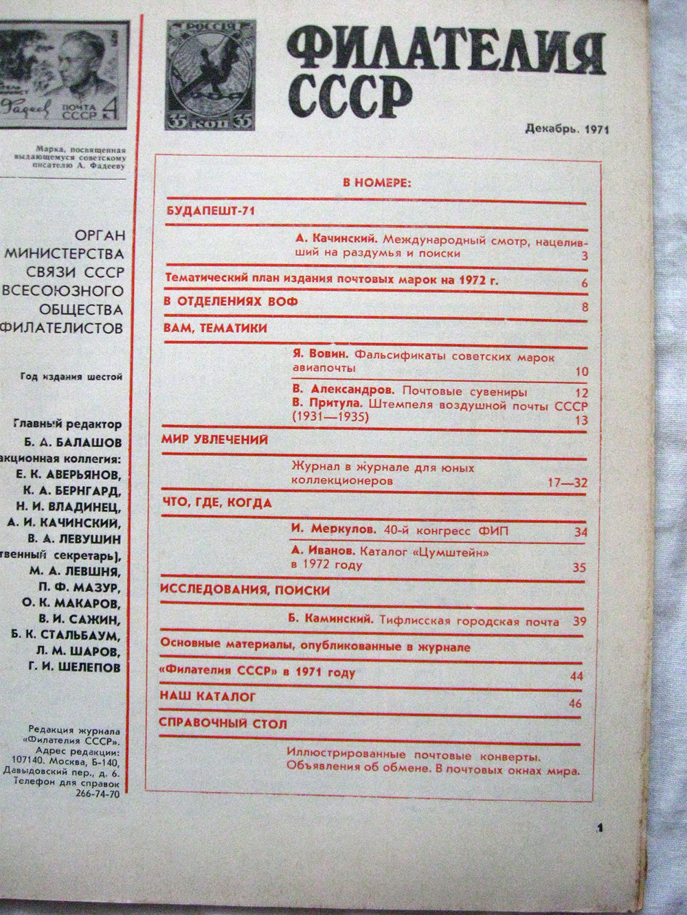 Журнал Филателия СССР Номер 12-1971 Есть все номера за 1970-80-е годы и кое-что из 1960-х Следите за моими новыми лотами Отправка посылок размером 25*35*45 см за 6,50 через QR-box без ограничения веса