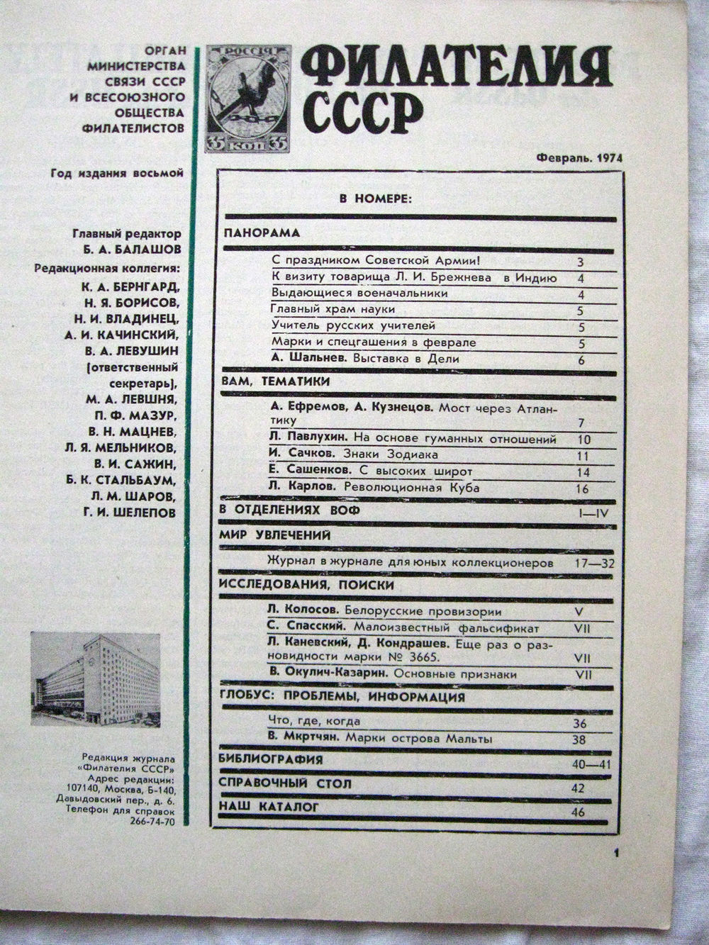 Журнал Филателия СССР Номер 2-1974 Есть все номера за 1970-80-е годы и кое-что из 1960-х Следите за моими новыми лотами Отправка посылок размером 25*35*45 см за 6,50 через QR-box без ограничения веса