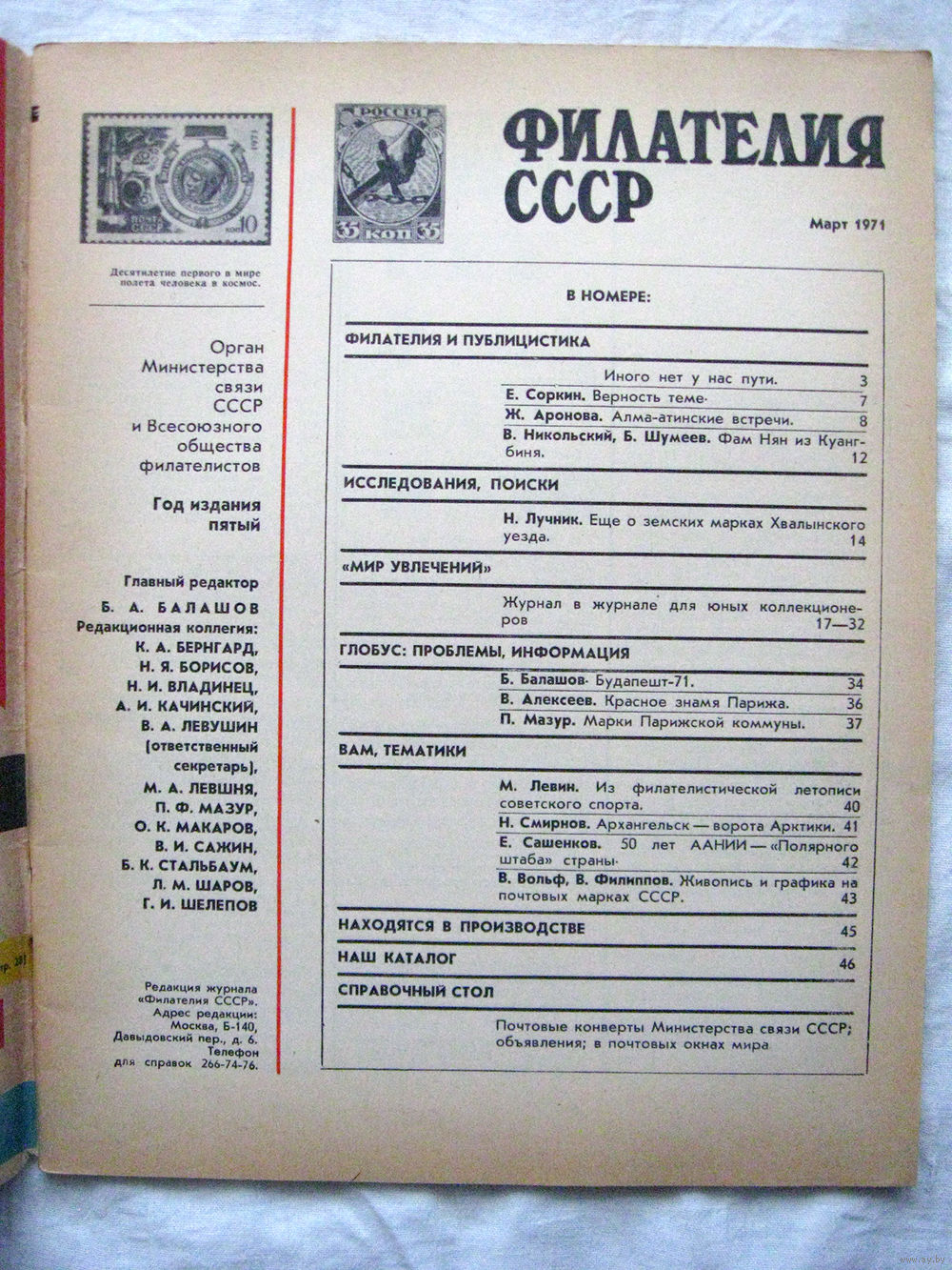 Журнал Филателия СССР Номер 3-1971 Есть все номера за 1970-80-е годы и кое-что из 1960-х Следите за моими новыми лотами Отправка посылок размером 25*35*45 см за 6,50 через QR-box без ограничения веса