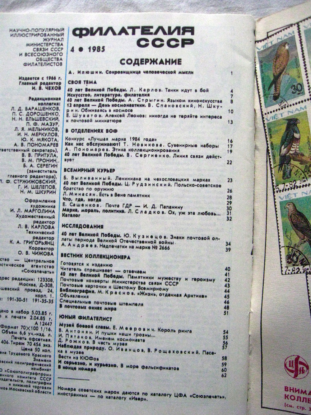 Журнал Филателия СССР Номер 4-1985 Есть все номера за 1970-80-е годы и кое-что из 1960-х Следите за лотами и резервируйте номера заранее Часть номеров 1960-70-х уже в резерве Отправка посылок размером 25*35*45 см за 6,50 через QR-box