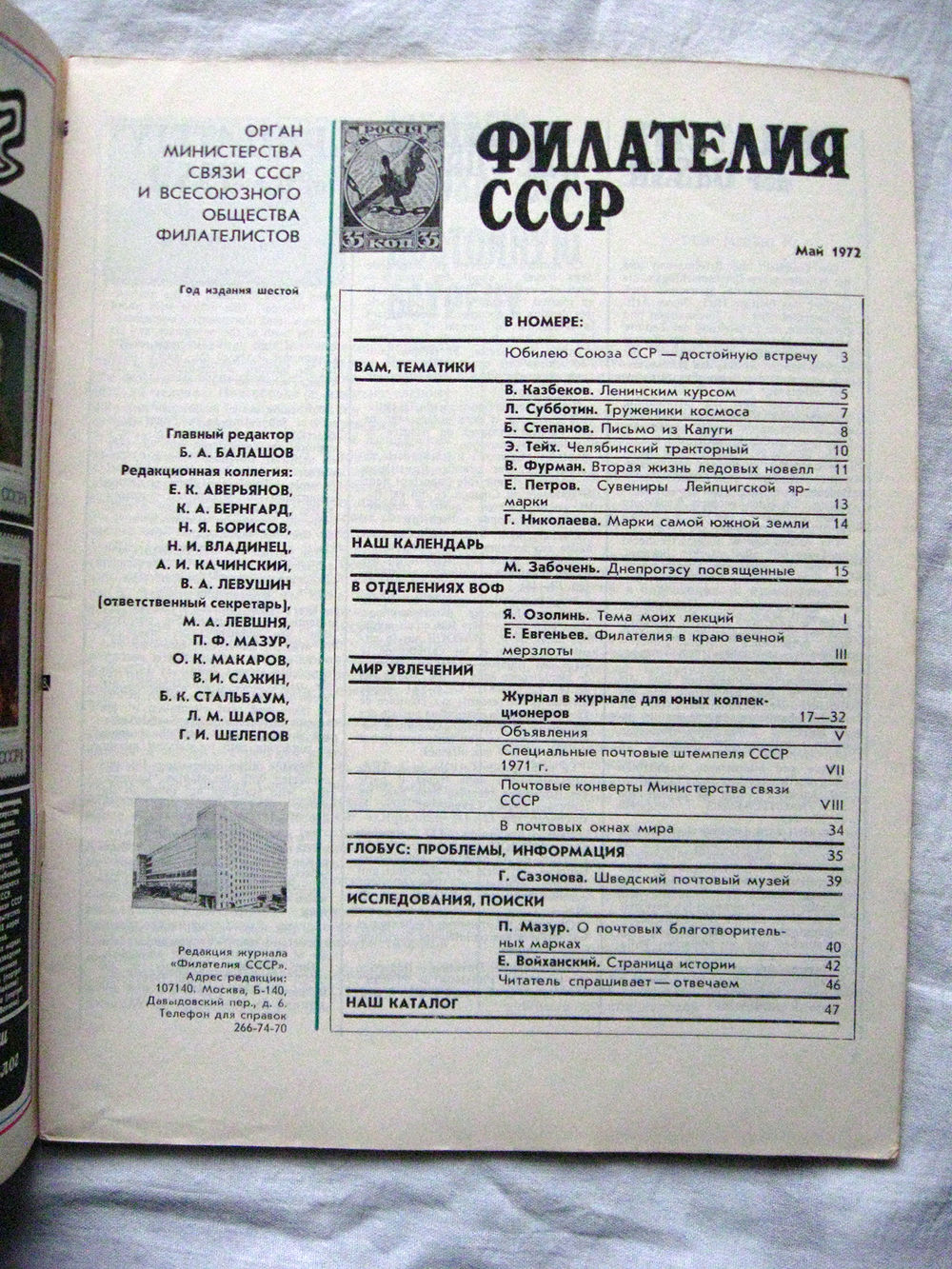 Журнал Филателия СССР Номер 5-1972 Есть все номера за 1970-80-е годы и кое-что из 1960-х Следите за лотами и резервируйте номера заранее Часть номеров уже в резерве Отправка посылок размером 25*35*45 см за 6,50 через QR-box
