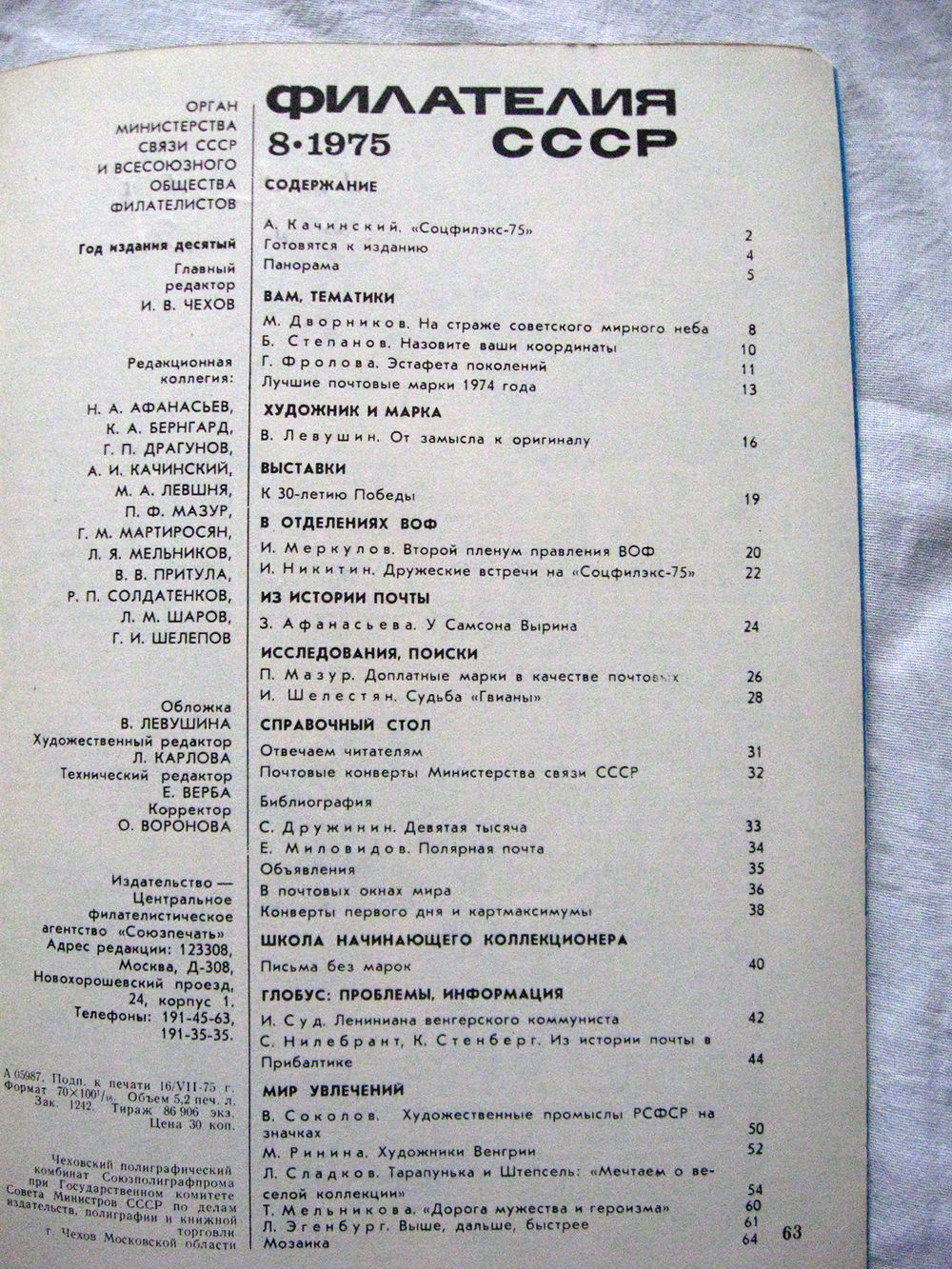 Журнал Филателия СССР Номер 8-1975 Есть все номера за 1970-80-е годы и кое-что из 1960-х Следите за моими новыми лотами Отправка посылок размером 25*35*45 см за 6,50 через QR-box без ограничения веса