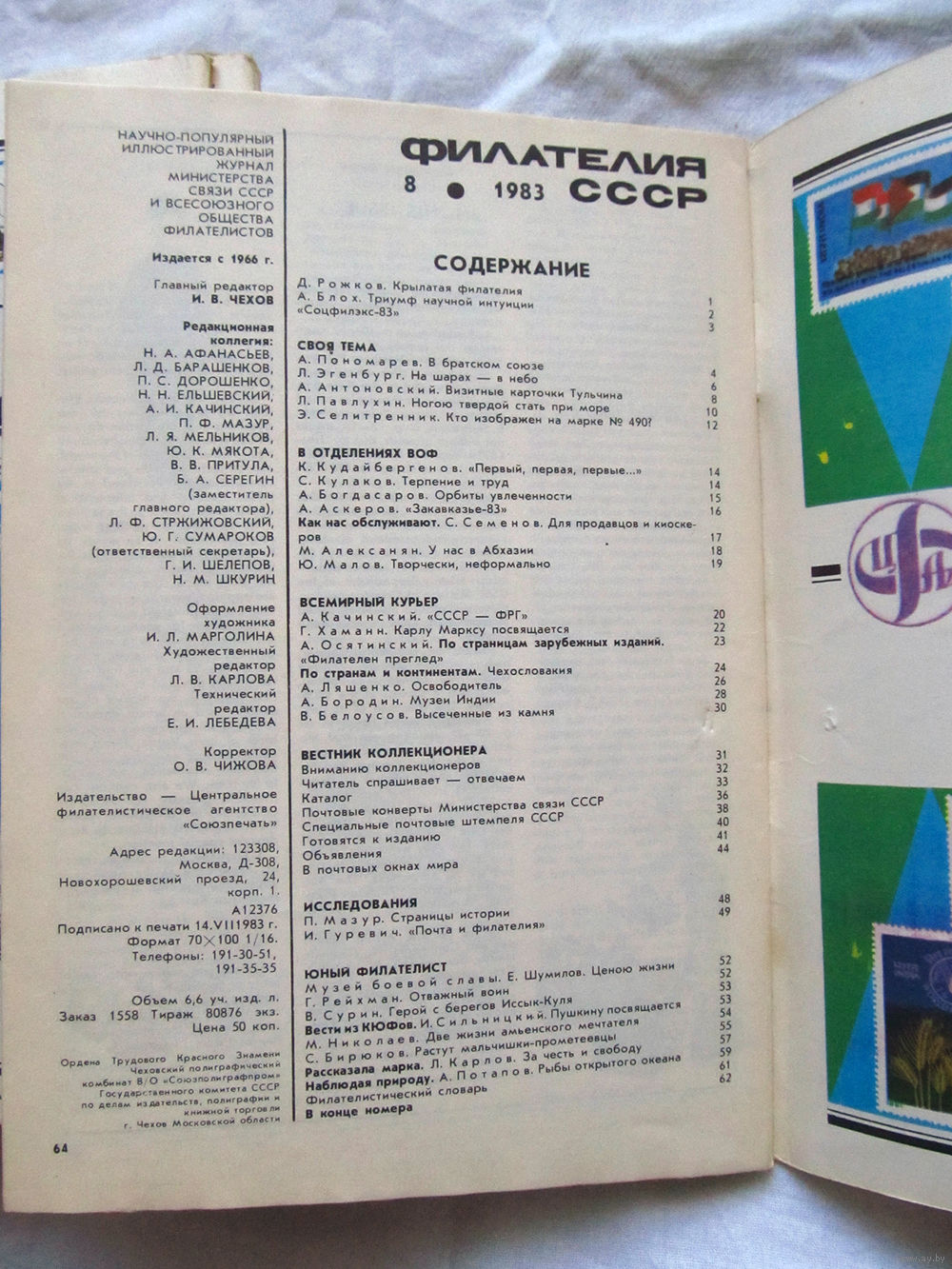 Журнал Филателия СССР Номер 8-1983 Есть все номера за 1970-80-е годы и кое-что из 1960-х Следите за лотами и резервируйте номера заранее Часть номеров уже в резерве Отправка посылок размером 25*35*45 см за 6,50 через QR-box
