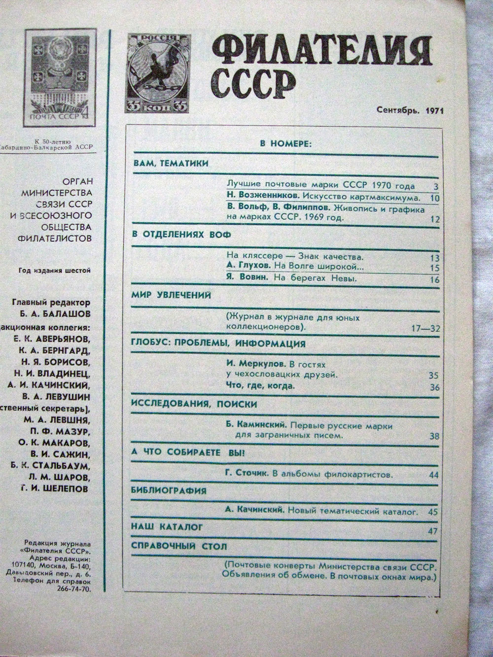 Журнал Филателия СССР Номер 9-1971 Есть все номера за 1970-80-е годы и кое-что из 1960-х Следите за моими новыми лотами Отправка посылок размером 25*35*45 см за 6,50 через QR-box без ограничения веса