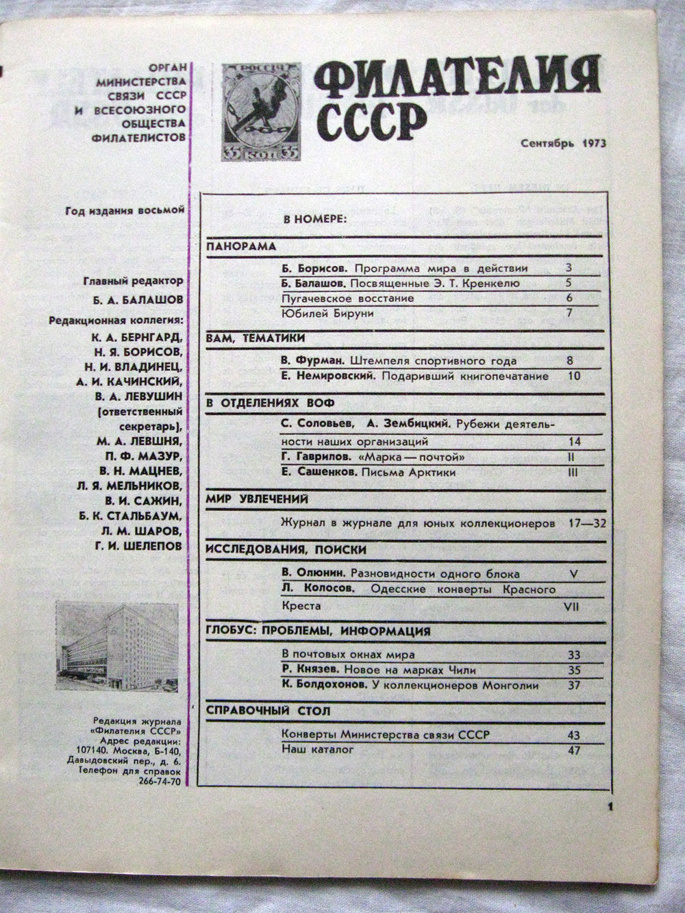 Журнал Филателия СССР Номер 9-1973 Есть все номера за 1970-80-е годы и кое-что из 1960-х Следите за лотами и резервируйте номера заранее Часть номеров уже в резерве Отправка посылок размером 25*35*45 см за 6,50 через QR-box