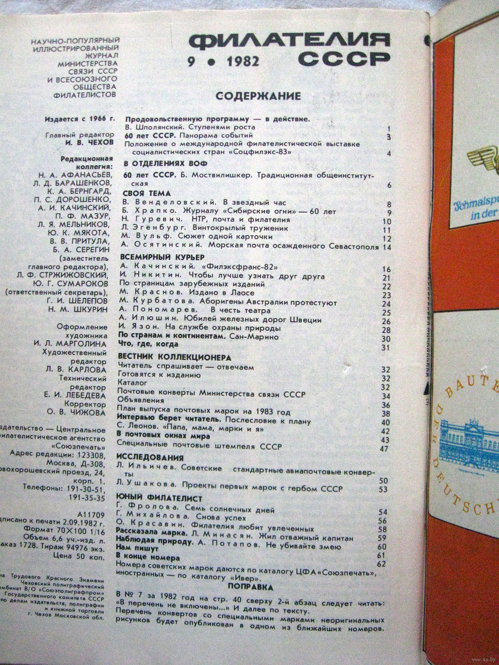 Журнал Филателия СССР Номер 9-1982 Есть все номера за 1970-80-е годы и кое-что из 1960-х Следите за моими новыми лотами Отправка посылок размером 25*35*45 см за 6,50 через QR-box без ограничения веса