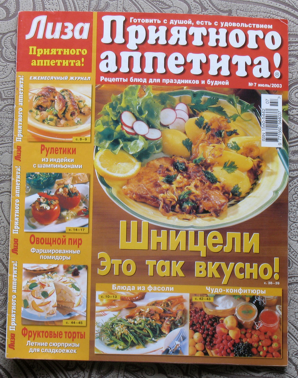 Журнал Лиза Приятного аппетита номера 4-2001 7-2003 8-2004 8-2014 Кулинарное путешествие номер 1-2003 Модные причёски номер 2-2003 Мой уютный дом номер 9-2015