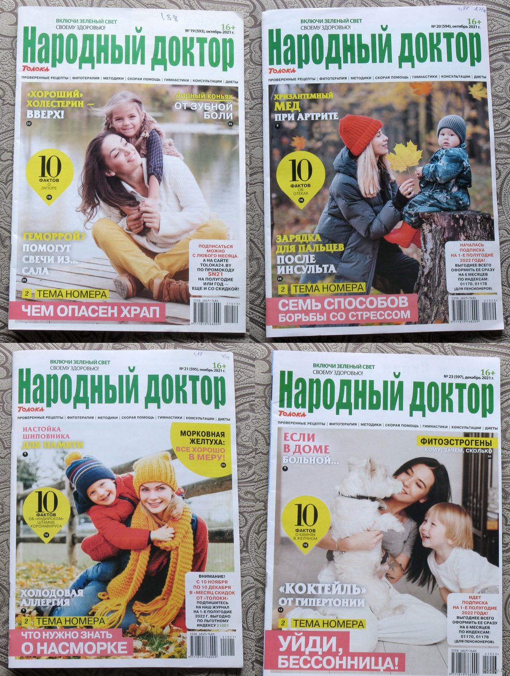 Журнал Народный доктор номер 19,20,21,24 2014 номера 1,3,4,8,15,19,22,24 2015 номера 10,11 2016 номера 7,9 2018 номера 18,19,20,21,22,23 2021