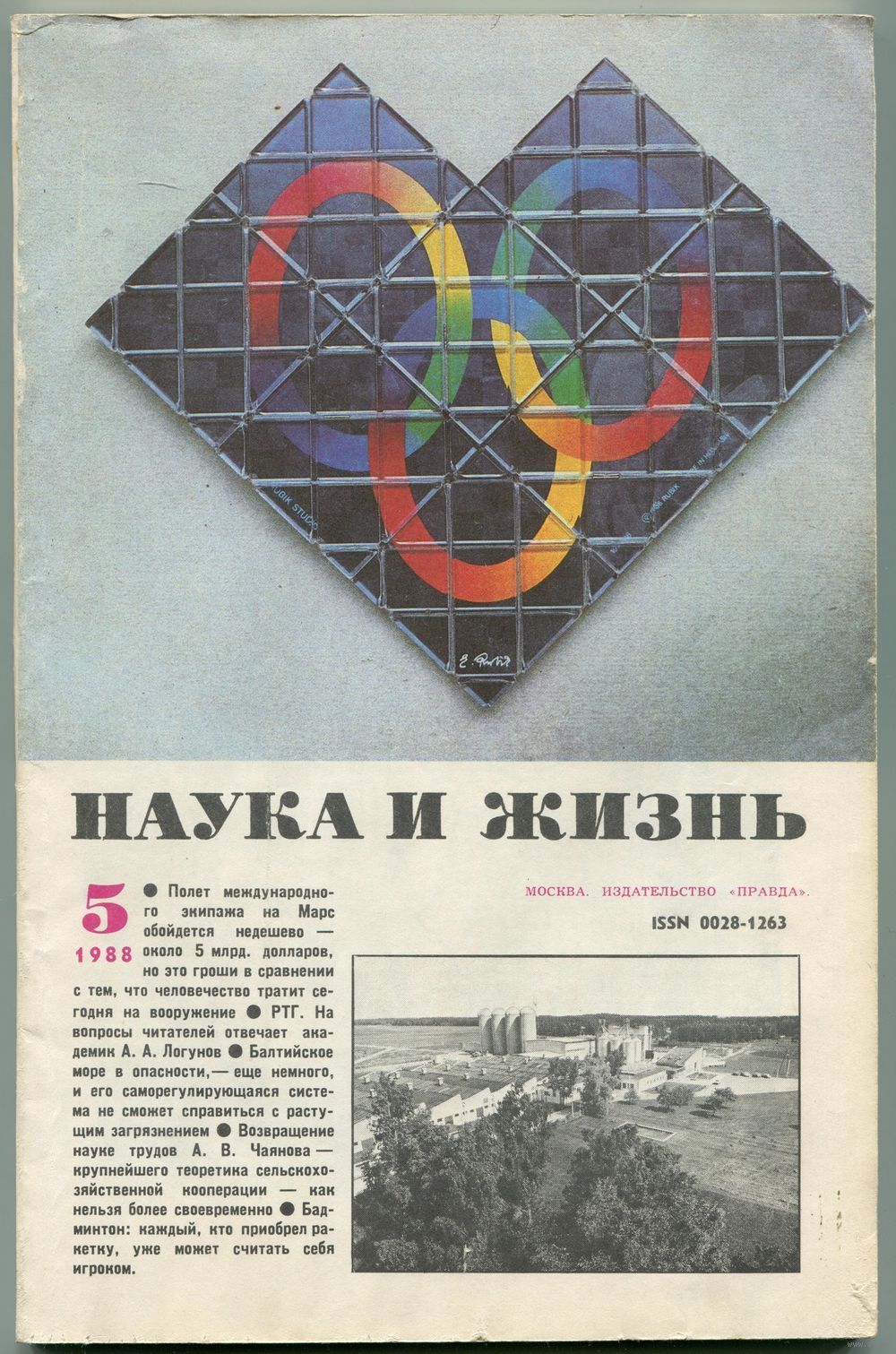 Р.Сагдеев, акад. - Стартуем к Марсу (2). Заметки о советской науке к технике (5). A.Никонов, акад. - Предмет исследований - труд земледельца (научное наследие А.В.Чаянова и современность) (8). Экология. Цифры и факты (19). Из писем в редакцию. Отклики и размышления (20). С.Панкратов - Динамика - геометрия поведения (22). П.Крутиков, канд. хим. наук, В.Осминин, канд. физ.-мат. наук - Пейзажи коррозии (26). О чем пишут научно-популярные журналы мира (29). И.Архипченко, канд. биолог. наук - Не отходы, а сырье (30). У семи нянек (Об экологических проблемах Балтики. Разговор за круглым столом ведут доктор биологических наук А.Симонов, кандидат географических наук В.Кузнецов, кандидат биологических наук В.Андрющенко, доктор химических наук С.Орадовский) (33). Бюро иностранной научно-технической информации (38). Семинар по русскому языку (41). B.Лебедев, летчик-космонавт СССР - Дневник космонавта (42). Б.Рыбаков, акад. - Русь дохристианская (46). Новая экологическая ассоциация (55). Н.Казинс - Таинственное плацебо (56). И.Миронов - Гибрид тыква - кабачок (64). Из жизни терминов (65). A.Логунов, акад. - Новая теория гравитации (66). Лучшие научно-популярные книги года (72). Э.Колбасина, канд. биолог. наук - Лимонник в садах Нечерноземья (74). Ответы и решения (77,153). B.Викторов - Возвращение имени (78). Рефераты (83). Э.Гуфельд, международный гроссмейстер - Шахматы - это борьба (84). К.Прапор - Не рычите на собаку (88). Психологический практикум (93). А.Борисов, инж. - Заводить один раз в год (94). А.Вулис, докт. филолог. наук - "Гофманиада" Ботаника X. или литературные деяния профессора А.В.Чаянова (98). А.Чаянов - Необычайные, но истинные приключения графа Федора Михайловича Бутурлина (99). Фотоблокнот (107). Кунсткамера (108). И.Константинов - Магик (Магические квадраты Рубика) (110). Новые книги (115,128). Переписка с читателями: И.Никольский - Рыбьи разговоры (116); А.Викторов - Дединовские узорочья (116); Н.Муллер - "Не рада баба повою, да рада бы покою" (118); Н.Ляшенко - Безымянные герои (119). Т.Гамкрелидзе, акад., В.Иванов, докт. филолог. наук - Индоевропейцы (120). Маленькие хитрости (129). Школа начинающего программиста (Занятие ведет инженер-программист И.Нестеров) (130). А.Галицкий, В.Лифшиц - Бадминтон - игра для всех (136). Для тех, кто вяжет (143). Кроссворд с фрагментами (144). Р.Левин - В гостях у динозавров (146). Е.Левитан, канд. пед. наук, Н.Мамуна - Проксима и другие достопримечательности Кентавра (148). Вести из институтов, лабораторий, экспедиций: Сорок ножек без сапожек (154); Любви все возрасты покорны (155); Почему исчезают кожистые черепахи (156). Г.Проскурякова, канд. биолог. наук - Береза (157).