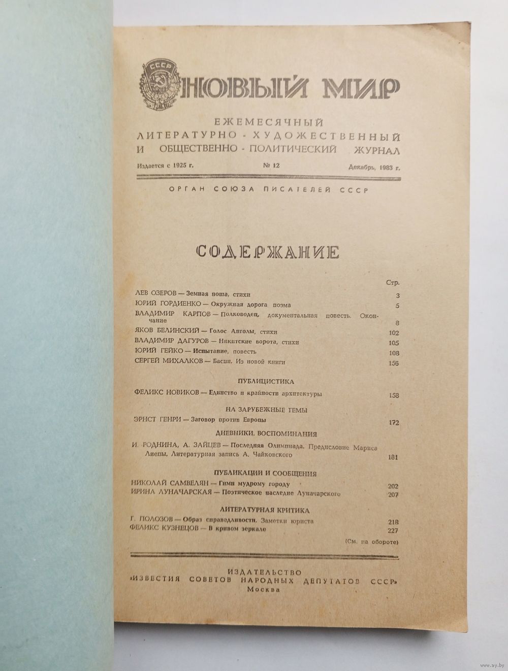 Журнал "Новый мир" #12 1983 год.