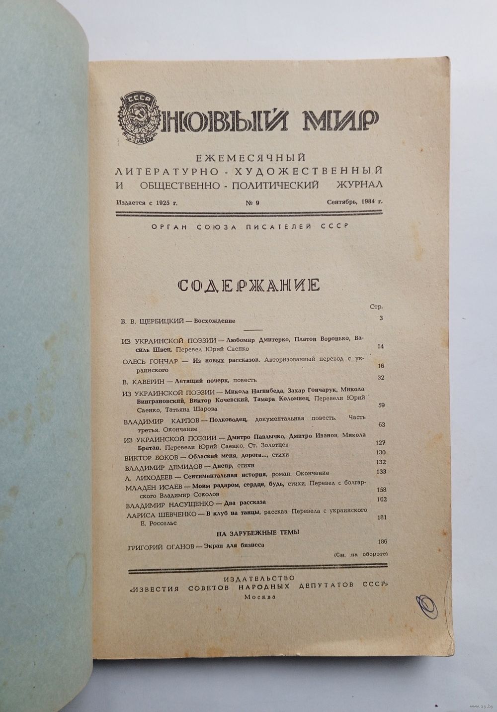 Журнал "Новый мир" #9 1984 год.
