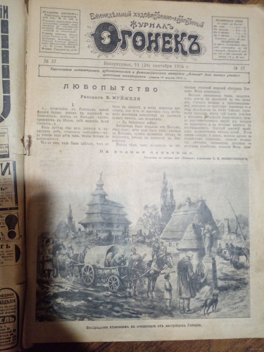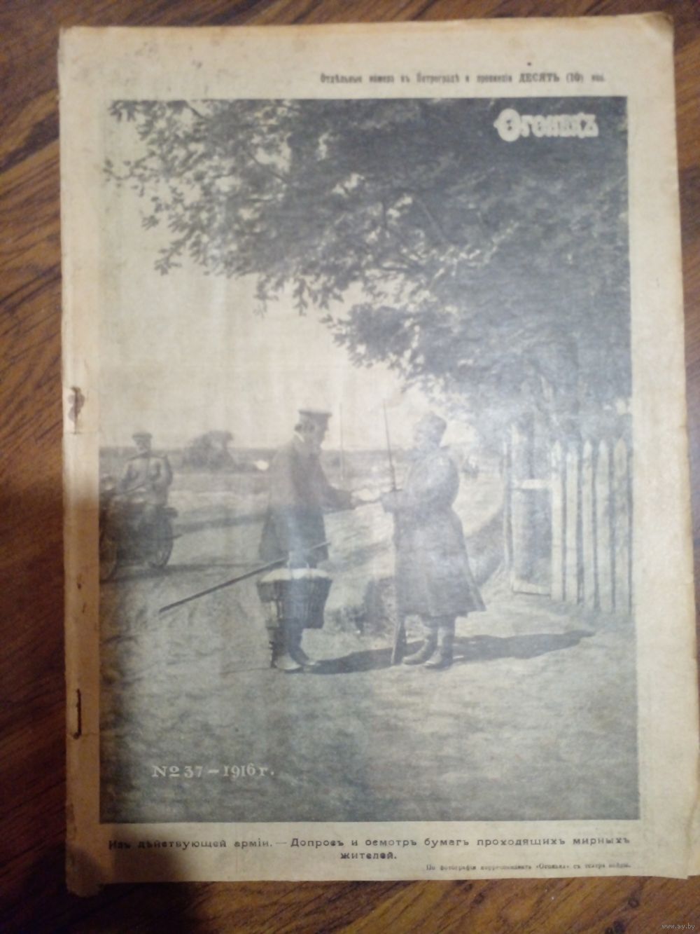 Журнал Огонек. 1916 г. номер 37 Еженедельный художественно-литературный журнал. 11 сентября 1916 г СПб. 1916г. 1-я мировая война. 20 с., илл. Мягкая издательская обложка., Энциклопедический формат.
